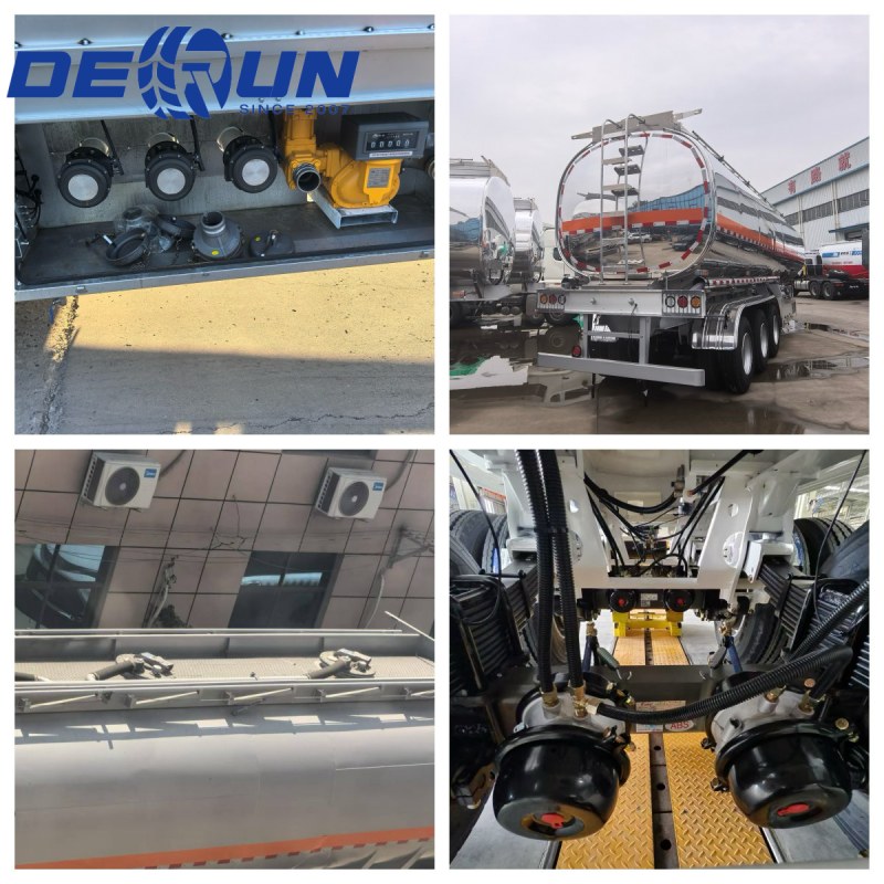 รถเทรลเลอร์กึ่งอลูมิเนียมเทลเลอร์อลูมิเนียมสามเพลา Derun มีตัวถังถังที่ทำจากโลหะผสมอลูมิเนียมซึ่งให้การก่อสร้างที่มีน้ำหนักเบาและความต้านทานการกัดกร่อน แผ่นต่อต้านสโลชภายในและช่องเก็บของสามารถยับยั้งการเคลื่อนไหวของของเหลวได้อย่างมีประสิทธิภาพเพิ่มความมั่นคงในระหว่างการขนส่ง ด้านบนมีฝาครอบท่อระบายน้ำและอินเทอร์เฟซการกู้คืนไอในขณะที่ด้านล่างมีวาล์วเบรกฉุกเฉินนิวเมติกทั้งหมดสอดคล้องกับกฎการโหลดอาร์เจนตินาและการขนถ่าย การเคลือบสะท้อนแสงสีขาวช่วยลดอุณหภูมิที่เพิ่มขึ้นจากแสงแดดลดการสูญเสียการระเหยของเชื้อเพลิง หางถังรวมถึงอินเทอร์เฟซที่สงวนไว้สำหรับเซ็นเซอร์ระดับของเหลวอำนวยความสะดวกในการติดตั้งระบบตรวจสอบอัจฉริยะในอนาคตโดยลูกค้า