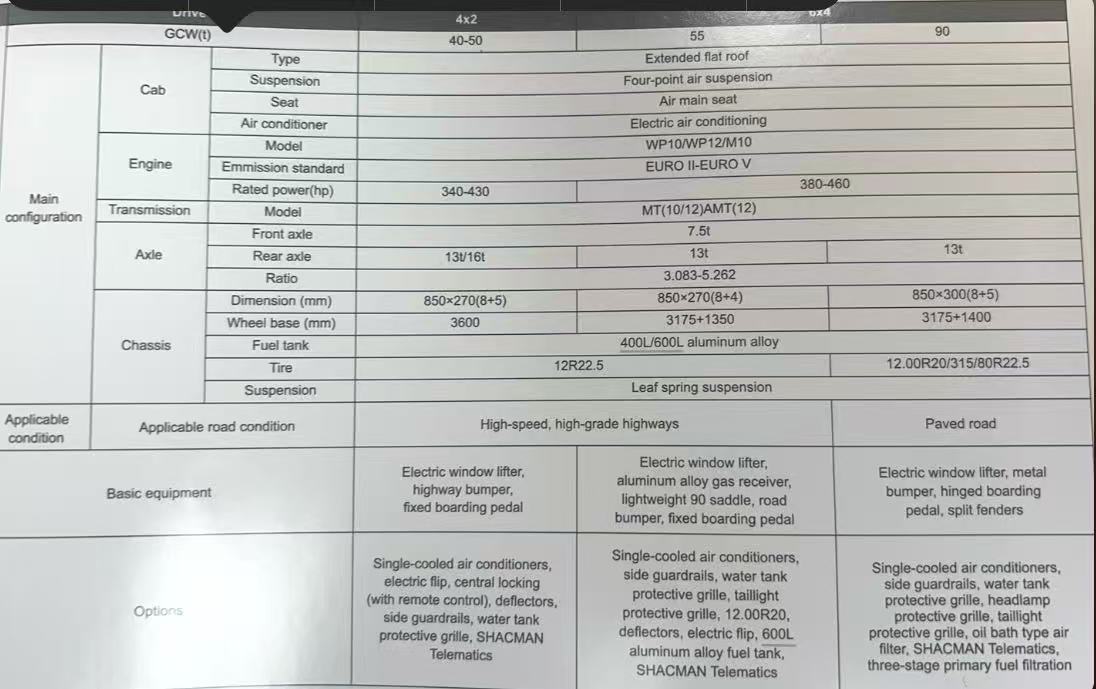 - เพลาและช่วงล่าง: เพลาหน้าใช้เทคโนโลยี 9.5T MAN และเพลาล้อหลังใช้เพลาชาย 13T หรือ 16T ระบบกันสะเทือนใช้สปริงแผ่นเหล็กที่มีความแข็งแรงสูงซึ่งสามารถทนต่อผลกระทบของภาระหนักและตรวจสอบให้แน่ใจว่ามีความเสถียรและความทนทานของรถบรรทุกภายใต้สภาพถนนที่ซับซ้อน